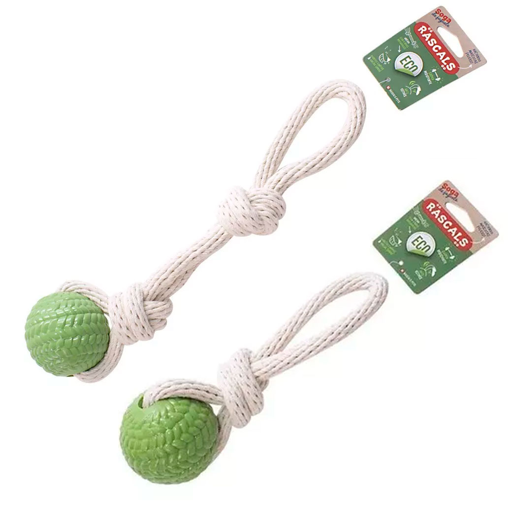 - COLORES: soga natural y juguete pelota verde
