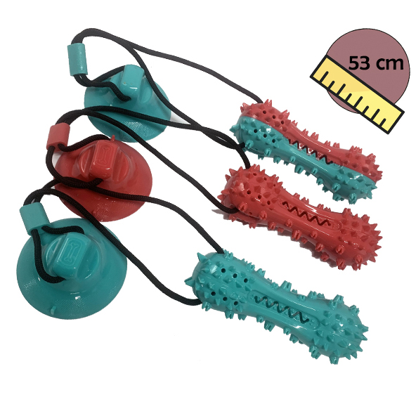 Hueso de goma para snacks con soga y ventosa 53cm