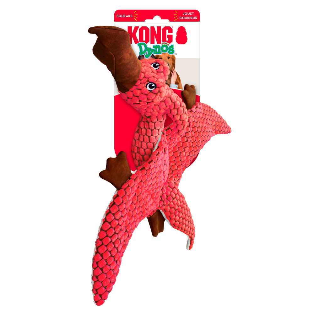 Con los KONG Dynos tanto los perros como los dueños pasan un buen rato jurásico. Estos adorables juguetes de felpa están hechos con un revestimiento reforzado para juegos duraderos. Las singulares y variadas texturas fascinan a los perros y fomentan un juego activo. Para mayor diversión, los KONG Dynos chirrían y emiten sonidos crujientes.