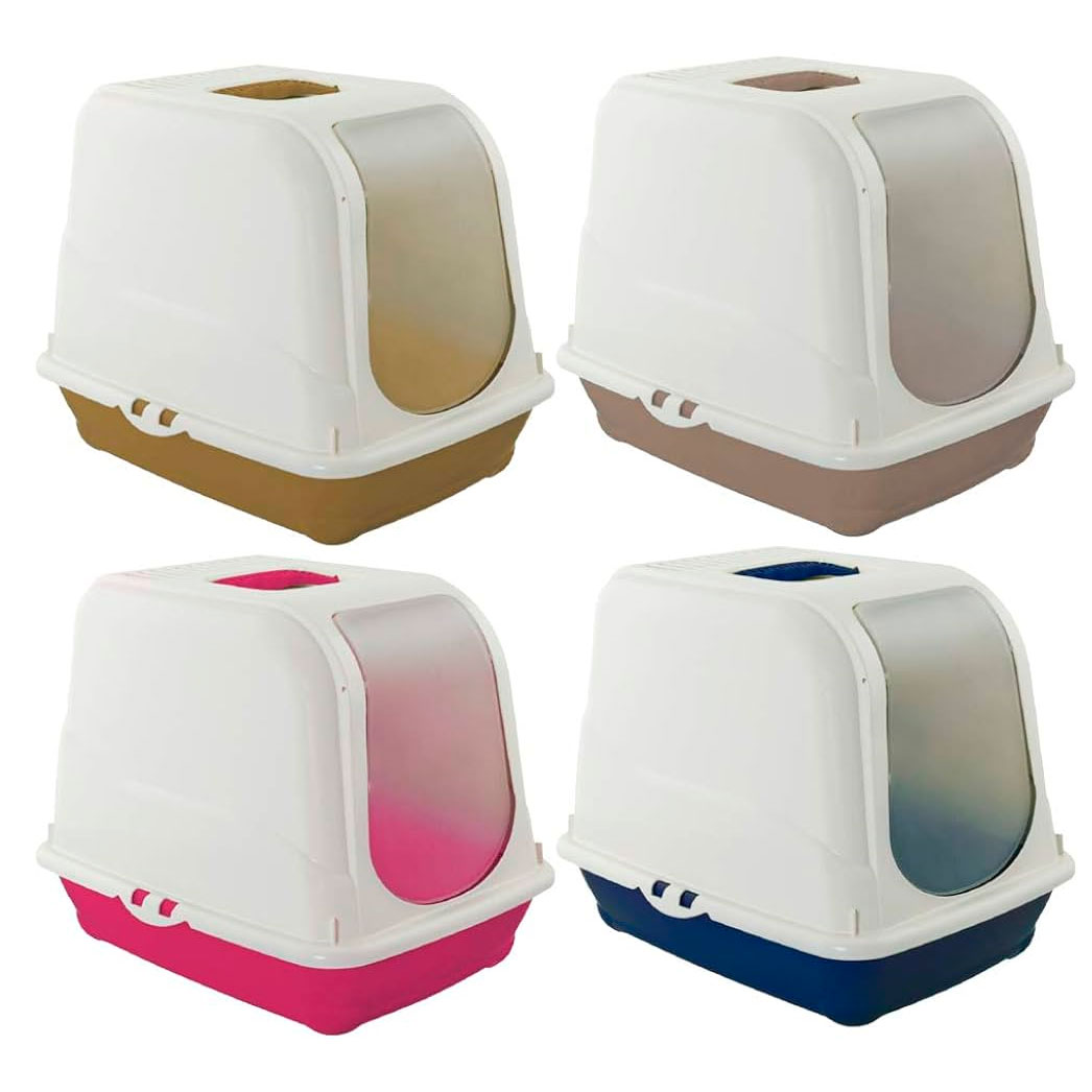 Litera sanitaria con cubierta, puerta abatible y asa, es ideal para adaptar a todos los gatos. La abertura frontal hará que tu gato pueda entrar y salir sin esfuerzo. Evita la dispersión de los granos de arena e incluye un filtro de carbón activo para neutralizar los malos olores. Está fabricada en plástico resistente y es muy fácil de limpiar. Medidas: 55 x 40 x 40 cm.